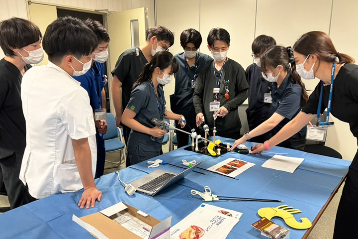 内視鏡手術およびロボット支援手術の普及を目指し、知識および技術習得のため、専攻医・研修医を中心に講習会やハンズオントレーニングなどを定期的に開催しています。